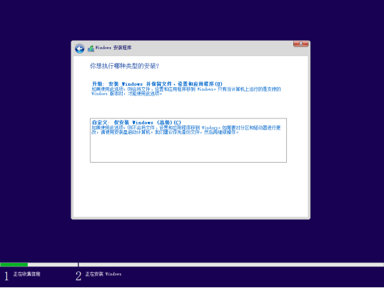 (6)全新安装选择自定义