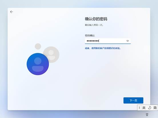 (15)输入账户名,创建密码,选择下一页;