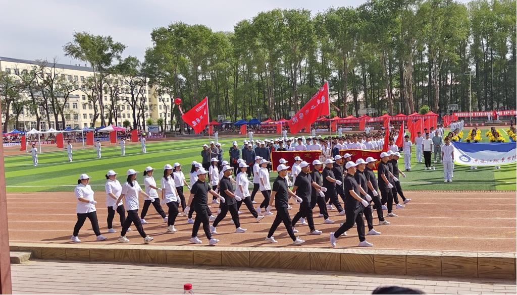 6月9日早上8时运动会正式拉开帷幕。体育场内红旗飘扬、英姿飒爽,信息工程学院方队高举院旗、高呼院训,同来自各学院代表队一起怀着坚定的信念,迈着整齐的步伐走进会场。检阅队伍表演开始后,同学们个个衣着整齐,面带笑容,为大会献上了异彩纷呈的团体演出。其中,我院学生朝气蓬勃、表现优异,刀旗队、方队的表演受到学校领导的一致好评,舞蹈队的表演为接下来的运动竞技拉开了精彩的序幕。