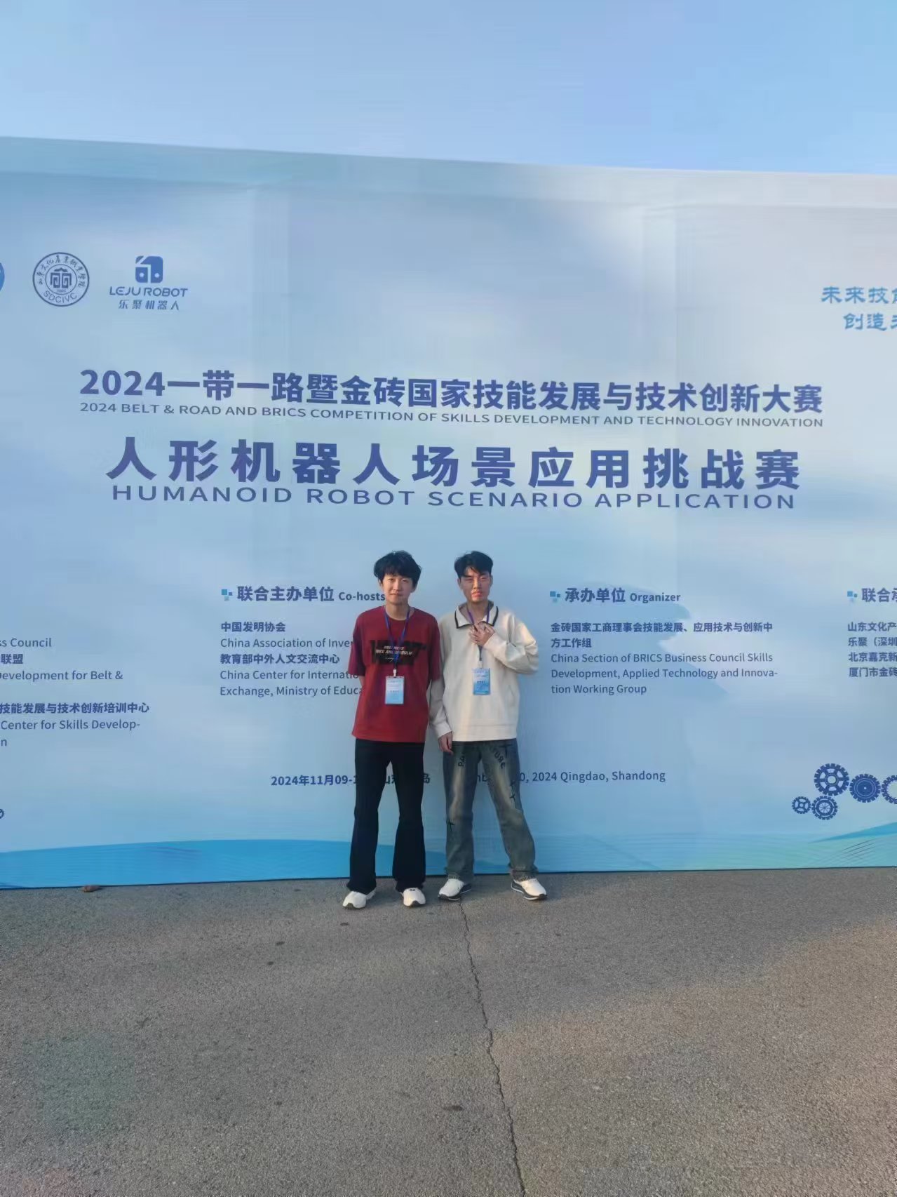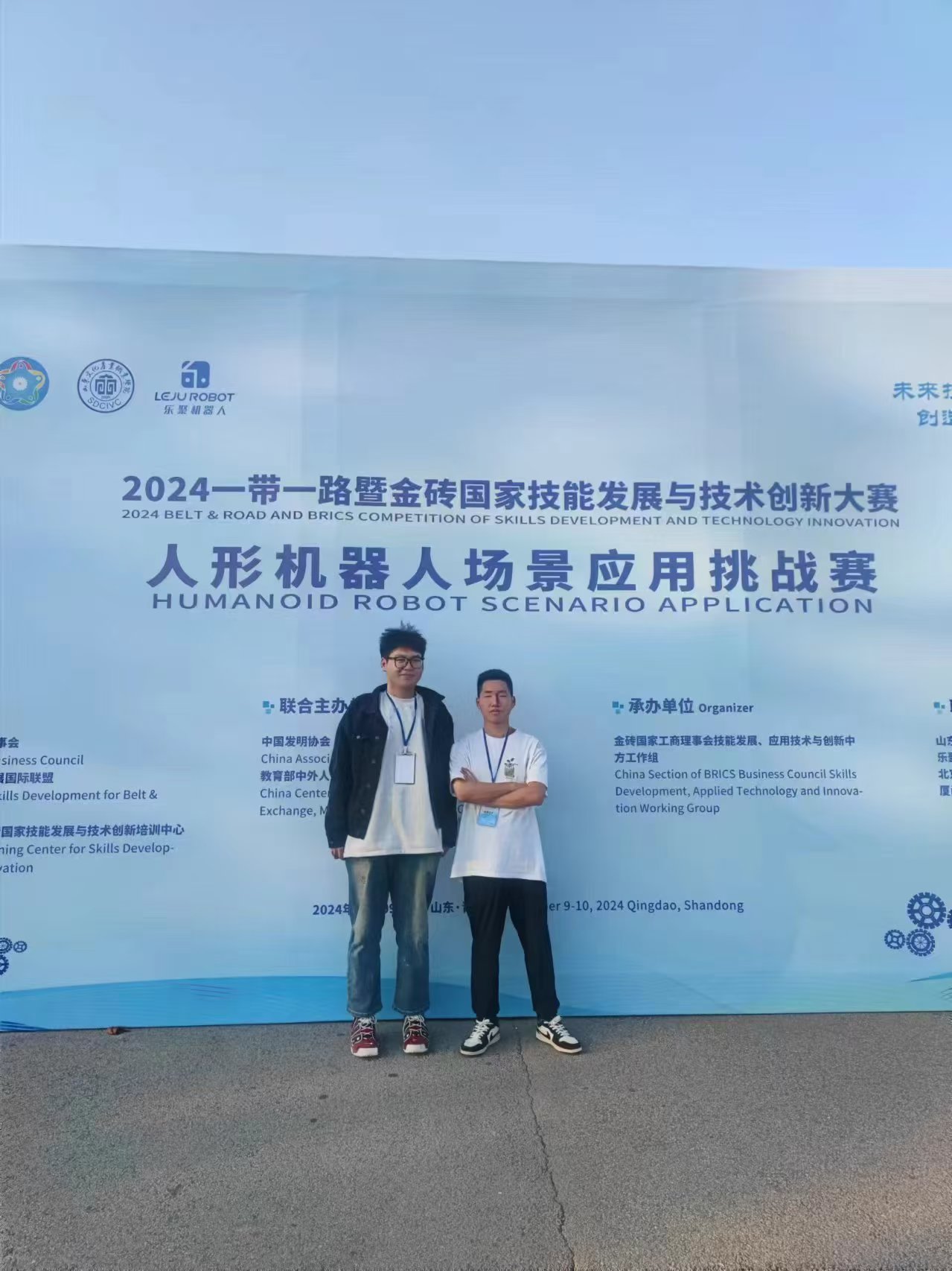 KY开元集团官网入口在2024一带一路暨金砖国家技能发展与技术创新大赛之人形机器人场景应用挑战赛-Aelos赛项国赛中,黄思宇、杜成义获得一等奖,指导教师,侯玉莹、庞金龙;刘以诺、田野获得二等奖,指导教师,侯玉莹、白宇莲;王迪、尉迟静微,吴远浩、王玉泽两个团队分别获得三等奖,指导教师,白宇莲、赵玉桥。