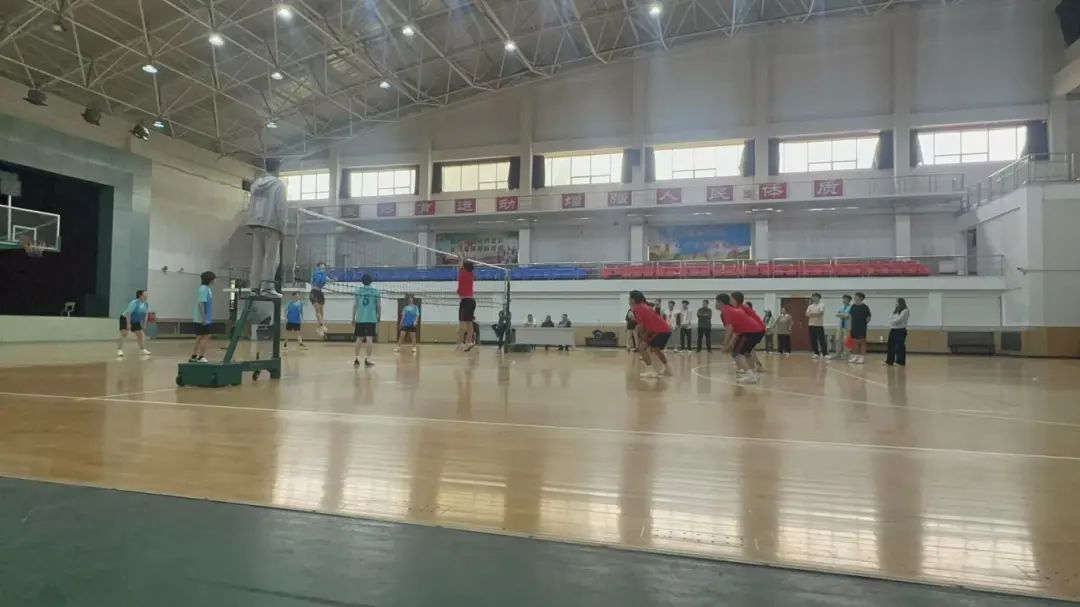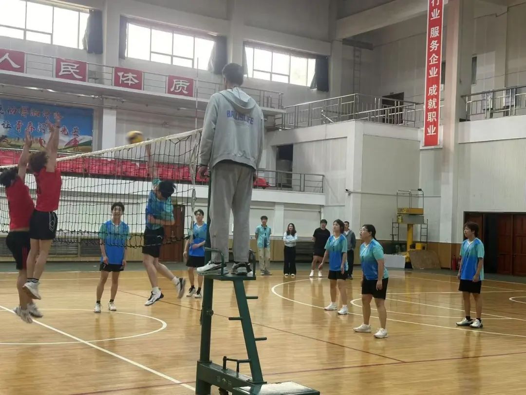 赛场上,队员们默契配合,奋力拼搏,发球、传球、垫球、网前击球,每个动作都展现出扎实的基本功和顽强的拼搏精神。