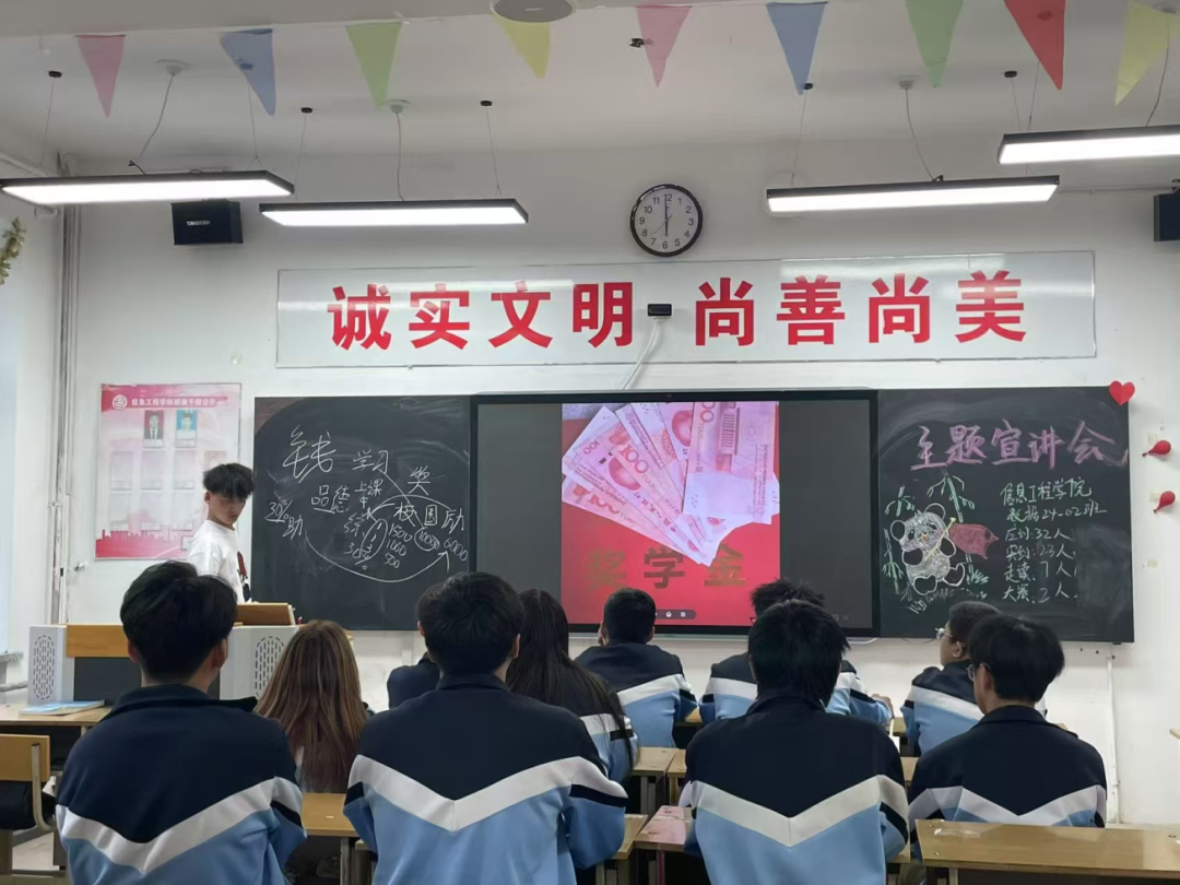 欧阳毓亭同学作为此次的分享人,分享了自己的学习经验和成长感悟。他的故事,像一把把火炬,点燃了在场同学们心中的梦想之火。这份励志的精神将在校园里蔓延开来,激励着同学们不断追逐自己的梦想。