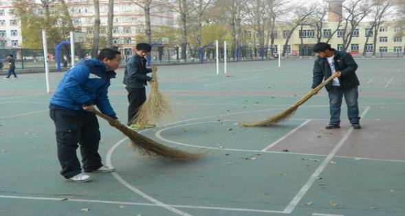 这次的义务劳动主要目的是“清扫落叶、美化校园”,这次活动的清扫范围是学校篮球场地,由于球场附近树木多所以必须每天清扫,清扫后统一装垃圾袋并带出场地,虽然有时天气情况比较恶劣,但是清扫过程中,他们的劳动积极性很高,大家十分认真,做到了每个角落都清理彻底,给篮球爱好者美丽空间,真正实现“美校园”。我院同学从不投机取巧,更没有拈轻怕重,在劳动中充分体现出了不怕苦不怕累的精神。这次的义务劳动自10月8日通知下去后,各专业同学就开始了认真准备,如值日分组明确、清扫时间准确到位、清扫工具领取等等。这段时间的清扫工作做的非常彻底,篮球场地的各角落都得到了彻底的清理。