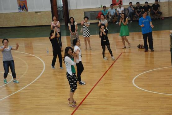 在女生的比赛中,女队一开始上来就展现了他们强有力的气势,第一局上来就打出了比分高潮,高难度发球,精彩的救球轮轮上演,使比赛精彩刺激,但是,老师队伍也毫不示弱,并没有被学生队的年轻活力所压倒,接连打出比分高潮,但是由于比分落后太多,第一局学生取得胜利。