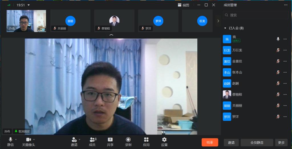 大数据技术教研室专任教师4人,兼职教师4人分别在会议上发言交流并探讨如何在线上线下相结合的情况下提高教学质量,大家畅所欲言,针对教学时遇到的问题及时相互沟通,发现问题解决问题,保证上课质量,提高学生学习的兴趣,为线下教学做好充足的准备。