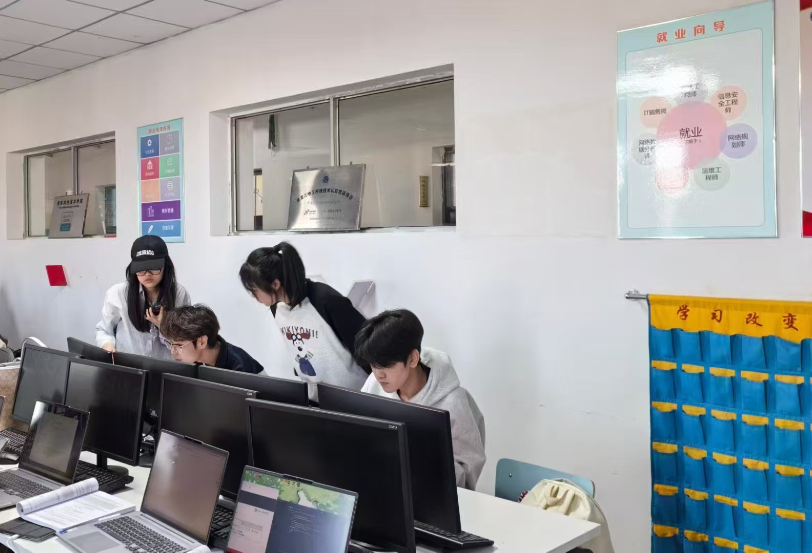 软件技术教研室的教师们采用该教学模式实现了翻转课堂。清晨的第一缕阳光照进教室,学生们不再低头疾书,而是围坐成一圈热烈讨论。翻转课堂的到来,彻底颠覆了传统教育的时空结构。通过“课前自主学习+课堂深度互动”的翻转结构,将知识传递与内化过程重构:课前,学生通过5-15分钟的微课视频完成知识获取,可反复观看、随时暂停;课中:教师转型为“学习教练”,80%时间用于个性化指导和项目实践并进行技术赋能,AI助教实时分析学习数据,生成个性化学习路径;课后,学生复习和教师评量。
