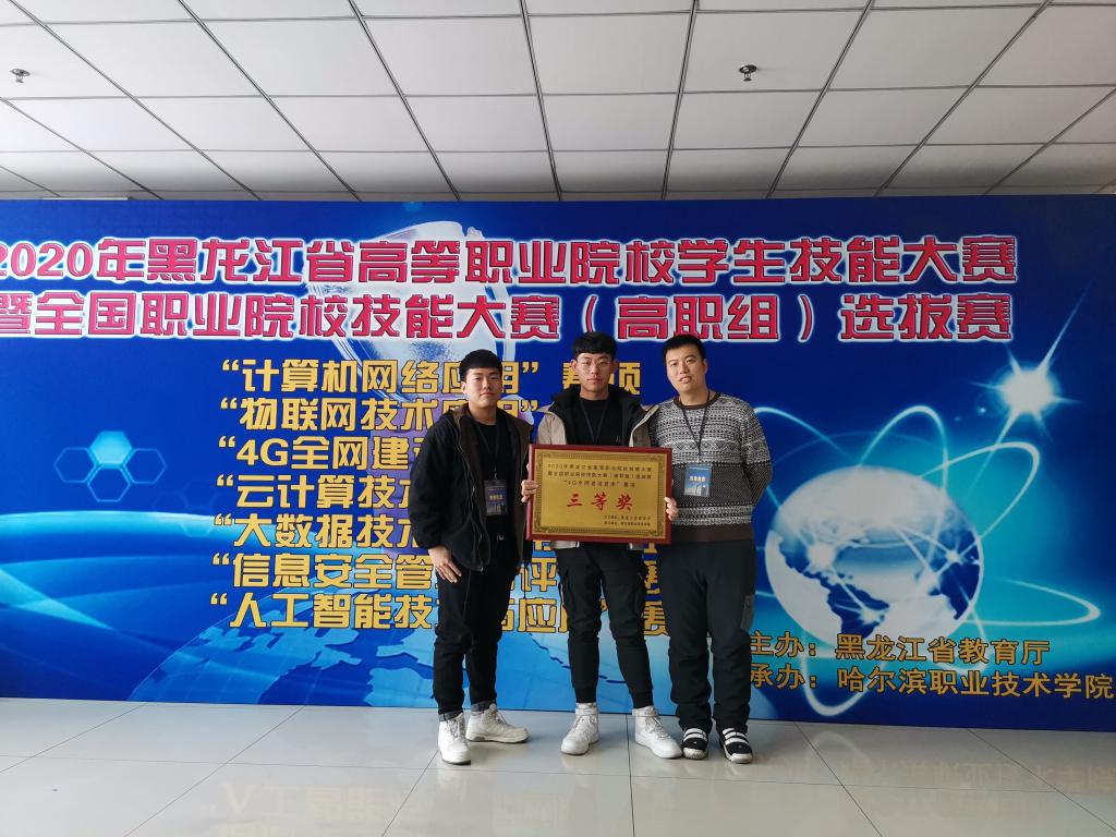 12月22日,2020年黑龙江省职业院校学生技能大赛暨全国职业院校技能大赛(高职组)选拔赛“4G全网建设技术”赛项在哈尔滨职业技术学院落下帷幕。KY开元官网由张秀杰、罗洋老师指导的李涛、王永恒、吴闯、徐胜男四名同学获得省赛二等、三等奖各一项,顺利入围国赛。
