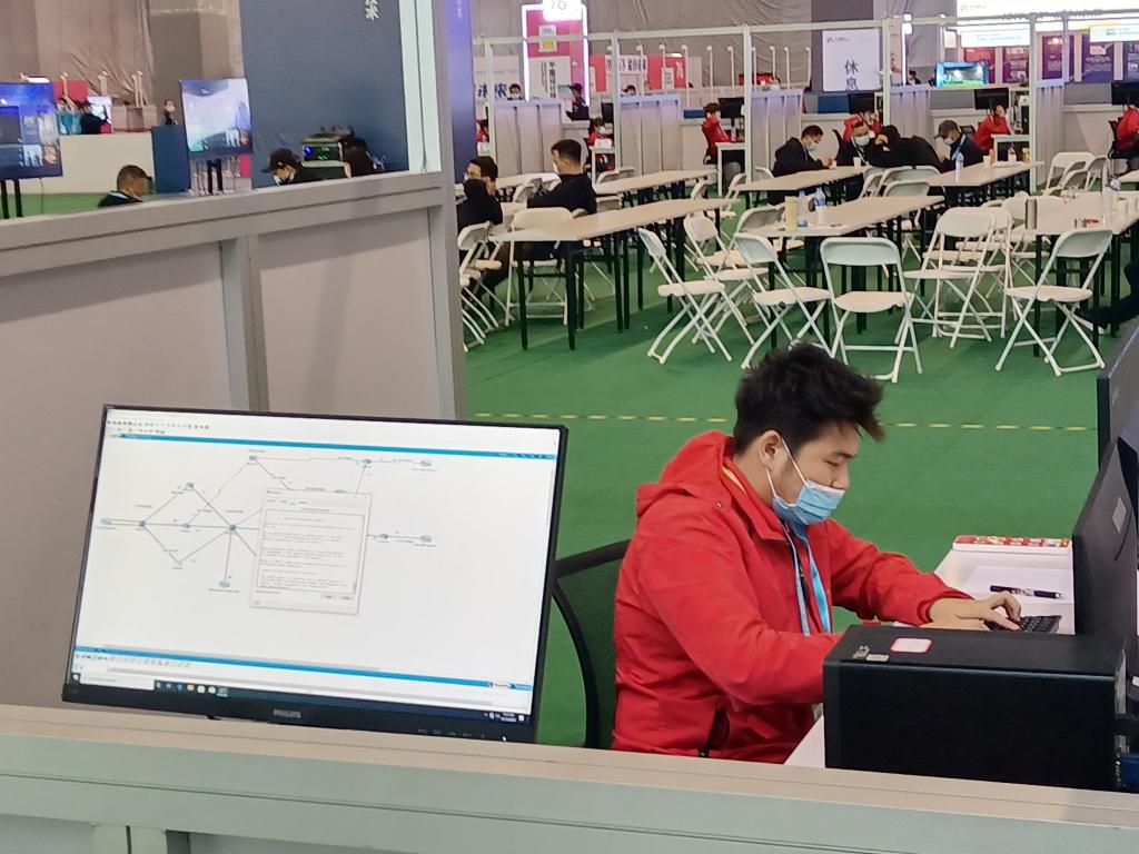 大赛采用A、B、C、D四个模块实操形式,现场操作,通过“linux应用”、“windows sever应用”、“网络设备配置”、“秘密挑战”四种题型考察参赛选手实际工程项目的综合分析能力、架构设计能力、网络配置能力、网络安全架构能力、创意创新能力。计算机网络技术专业学生李恩泽同学参加全国技能大赛赛,经过三天共12个小时的激烈角逐,李恩泽取得了优异的成绩,展现了KY开元官网学生计算机网络技术技能与风采,收获了成果导向教学改革阶段性成果,赛后将认真总结,以赛促教,以赛促学,为培养更多高技能技术型人才而努力!