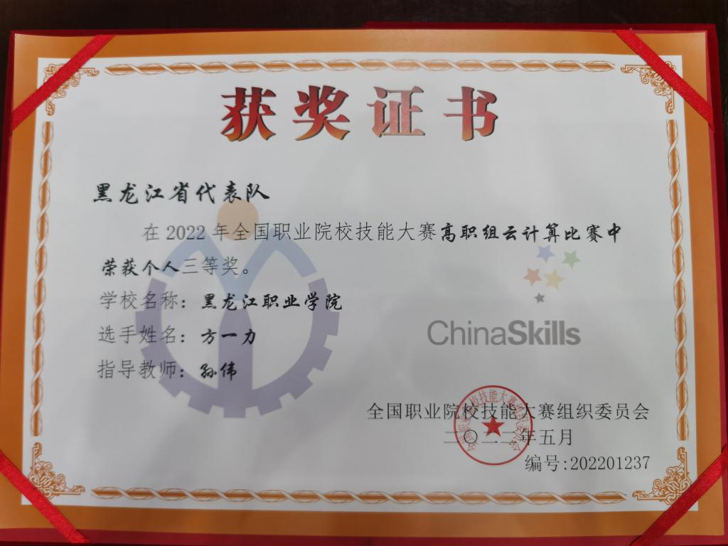 2022年全国职业院校技能大赛云计算赛项获奖证书