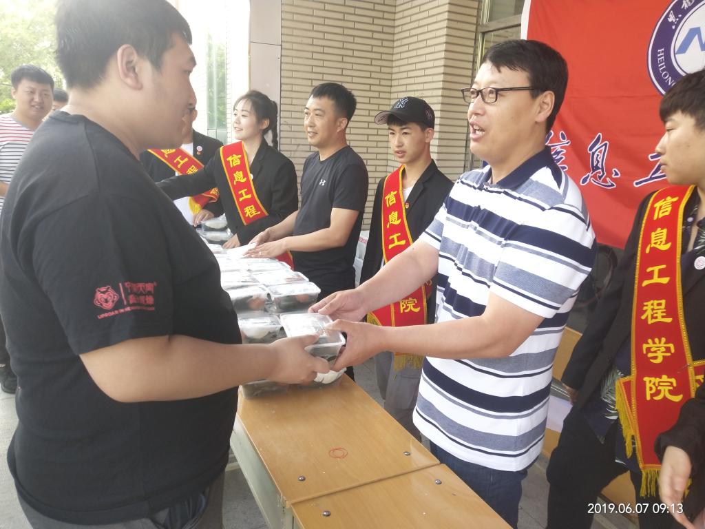 6月7日早,由杨涛老师、孙大鹏导员带队起早采办粽子、鸡蛋、凉糕等食品,9点,张晓霖副院长、团总支徐瑞辉书记、马莉导员一同来到分发粽子的场地,随后节日期间在校学生陆续赶来,张副院长首先代表学院祝福大家“端午安康、幸福快乐、学业有成”随后为大家分发慰问品。