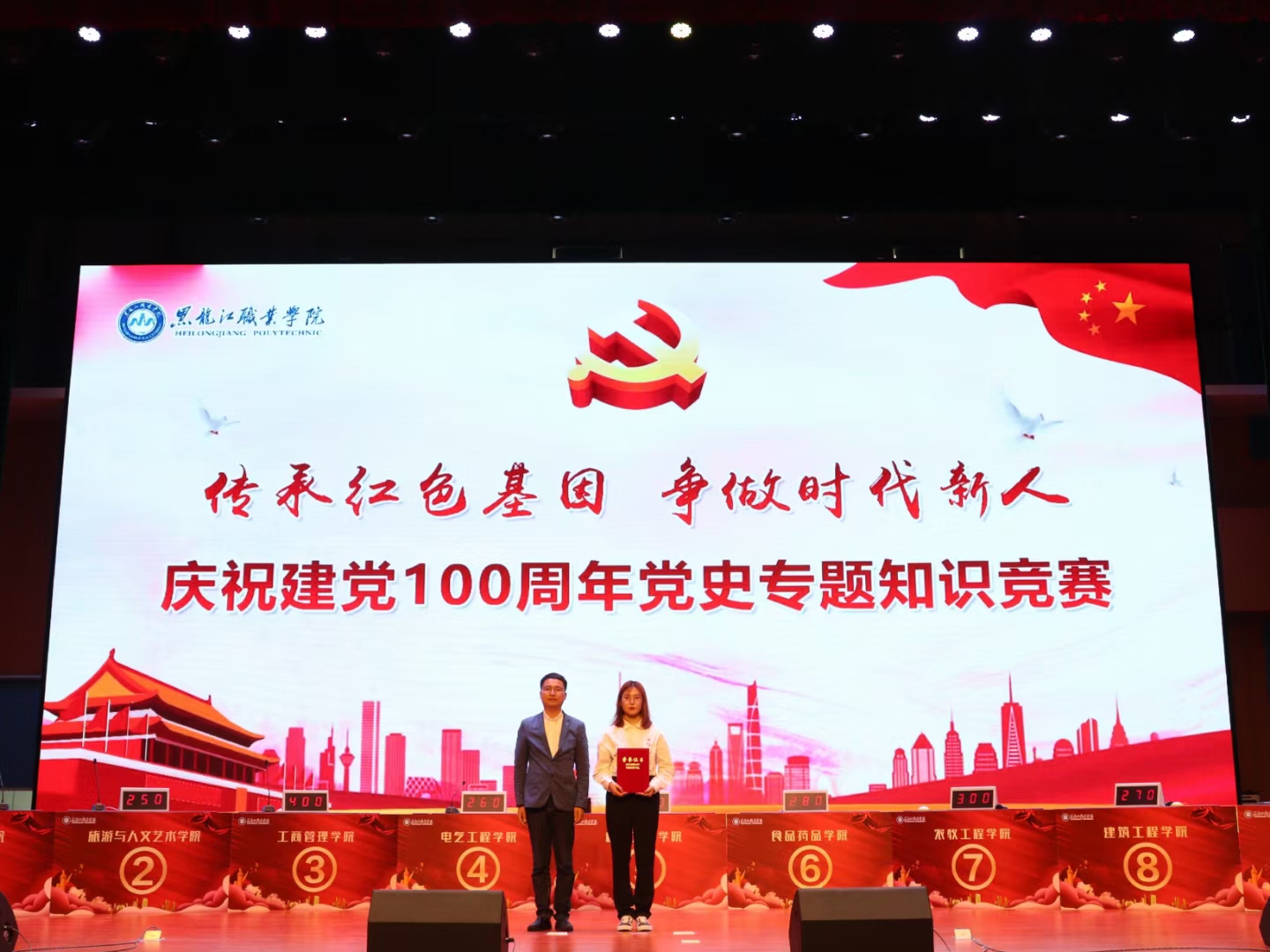 为进一步推动党史学习教育走深走实,庆祝中国共产党成立100周年,切实做到学史明理、学史增信、学史崇德、学史力行,不断适应新时代要求,在6月4日下午,由学校党委组织部主办、校团委承办“传承红色基因·争做时代新人”庆祝建党100周年党史专题知识竞赛活动在一校区工匠楼礼堂隆重举办。