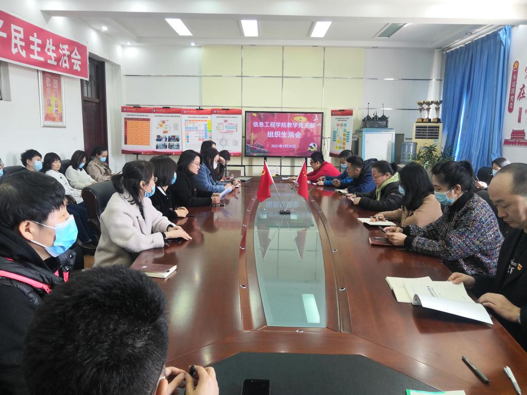 按照学校党委组织部《关于召开2020年度基层党组织组织生活会和开展民主评议党员的通知》文件精神和要求,信息工程学院教学党支部委员学习领会文件精神、组织全体党员认真学习相关文件、广泛征集党内外群众意见和建议、广泛开展谈心谈话,为组织生活会做好充分准备,并于2021年3月24日,中午12:30分在511会议室召开主题为“学习贯彻习近平新时代中国特色社会主义思想,深入学习贯彻党的十九届五中全会精神、省委十二届八次全会精神,贯彻新发展理念、融入新发展格局、推动高质量发展、为夺取全面建设社会主义现代化新龙江新胜利贡献积极力量。”的支部组织生活会和开展民主评议党员。