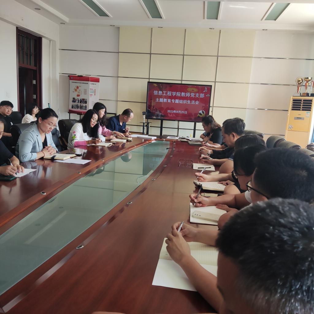 为深入学习贯彻习近平总书记关于主题教育重要讲话和重要指示批示精神,根据《中共中央纪委机关 中共中央组织部 中央学习贯彻习近平新时代中国特色社会主义思想主题教育领导小组关于在学习贯彻习近平新时代中国特色社会主义思想主题教育中开好专题民主生活会的通知》,8月25日9点30分,信息工程学院教师党支部在KY开元集团官网入口第二校区511会议室召开了主题教育专题组织生活会。本次会议由教师党支部书记卢凤伟主持,支部全体党员参加本次会议。