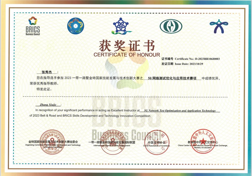2023一带一路暨金砖国家技能发展与技术创新大赛之5G网络测试优化与应用技术赛项优秀指导教师