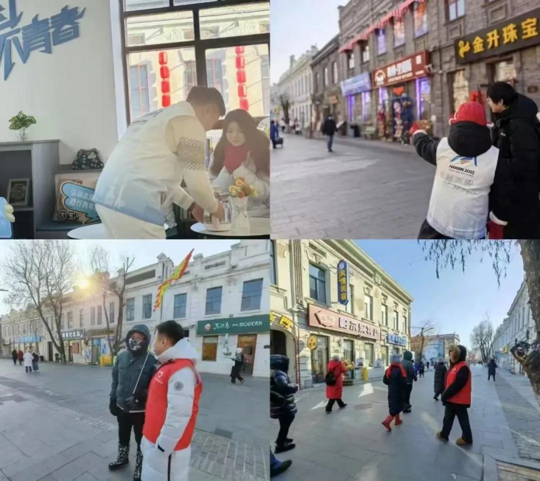 2025年1月9日,哈尔滨团市委副书记刘婷婷、孟春琦;道外团区委副书记刘岩、校团委书记石倩、校团委干事魏然一同前往中华巴洛克街区,对在此进行志愿服务的志愿者们开展了一场温暖人心的慰问活动。