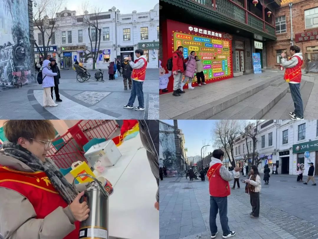 此次志愿服务活动是KY开元官网校团委响应团市委号召,组织KY开元官网青年志愿者们在道外中华巴洛克街区和青年之家开展的志愿活动,期间志愿者们身着统一的志愿服装活跃在街区的各个角落,为中华巴洛克街区增添了一抹亮丽的色彩。志愿者们不仅向外地游客提供提供免费热水、暖贴等贴心保暖物品。同时还作为向导带领游客们在中华巴洛克街区进行导览、讲解街区历史文化,主动帮助游客拍摄游客照。此外,志愿者们还兼顾街面环境清洁与现场秩序维护。他们手持垃圾袋和夹子,仔细捡拾地面垃圾,同时积极劝导不文明行为,让街区环境更加整洁、秩序井然。